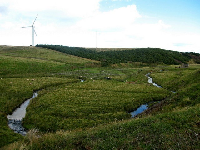 Crédit photo : Lisa Jarvis, licence CC. Paysage des Lammermuirs. L’éolienne fait partie de la ferme éolienne de Crystal Rig.