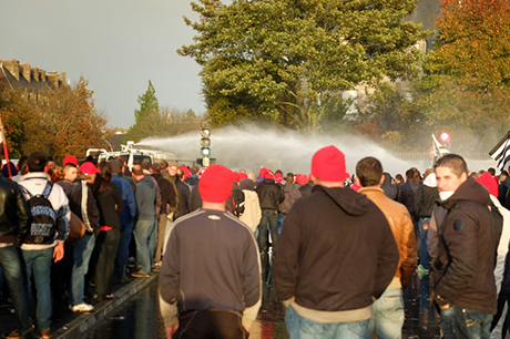 04/11/2013 – 11h15 Quimper – (Breizh-info.com) — Samedi après-midi à Quimper, lors de la manifestation des Bonnets rouges, un jeune homme a été grièvement blessé à l’oeil, suite à un tir de canon à eau à bout portant.