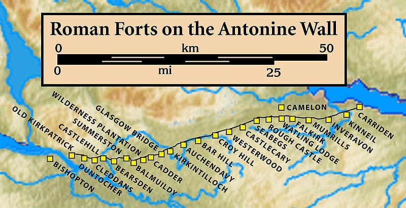 10/12/2013 – 08H00 Édimbourg (Breizh-info.com) – Moins connu que le mur d’Hadrien, à la frontière sud de l’Écosse, le mur d’Antonin s’étend plus au Nord, du Firth of Clyde au Firth of Forth. D’une longueur de 63 km, il a été édifié par les Romains entre 142 et 154 pour se protéger contre les Calédoniens. C’est la frontière la plus septentrionale de l’empire romain. Bordé par un fossé au Nord, par une voie de desserte militaire au Sud, il s’appuyait sur une ligne de forts. Évacué au bout d’une vingtaine d’années, il a été brièvement réoccupé par les Romains sous Septime Sévère, au tout début du 3e siècle, puis définitivement abandonné.
