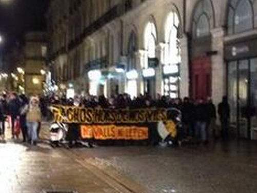 Répondant à l’appel de l’Action anti-fasciste de Nantes, 200 personnes se sont retrouvées vendredi soir place du Bouffay, en plein centre-ville, avant de se diriger vers l’ancienne Manufacture des tabacs, où se tenait la réunion de la liste RBM. Regroupés derrière une banderole où était inscrit « Fachos hors de nos vies, ni Valls, ni Le Pen » (sic) les manifestants ont scandé les slogans traditionnels comme l’inusable « F comme fasciste, N comme nazi, à bas, à bas le Front National » ou plus novateurs comme « Honte aux socialos qui accueillent les fachos » ; s’attirant au passage cette remarque ironique d’un quidam : « Ils sont vraiment injustes avec leurs copains !». Sans doute une allusion à l’étrange bienveillance du ministre de l’Intérieur pour les « antifas » qui – c’est un fait bien établi – ne sont jamais inquiétés, quelles que soient les violences ou les déprédations commises.