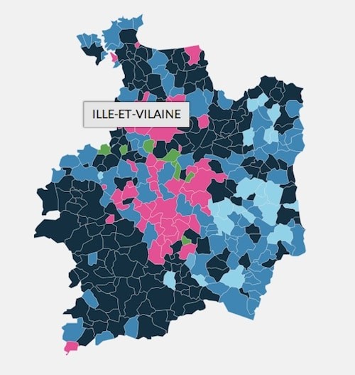 En téléchargement ici la liste des communes où le Fn est arrivé en tête en Ille et Vilaine, puis en Loire-Atlantique .
