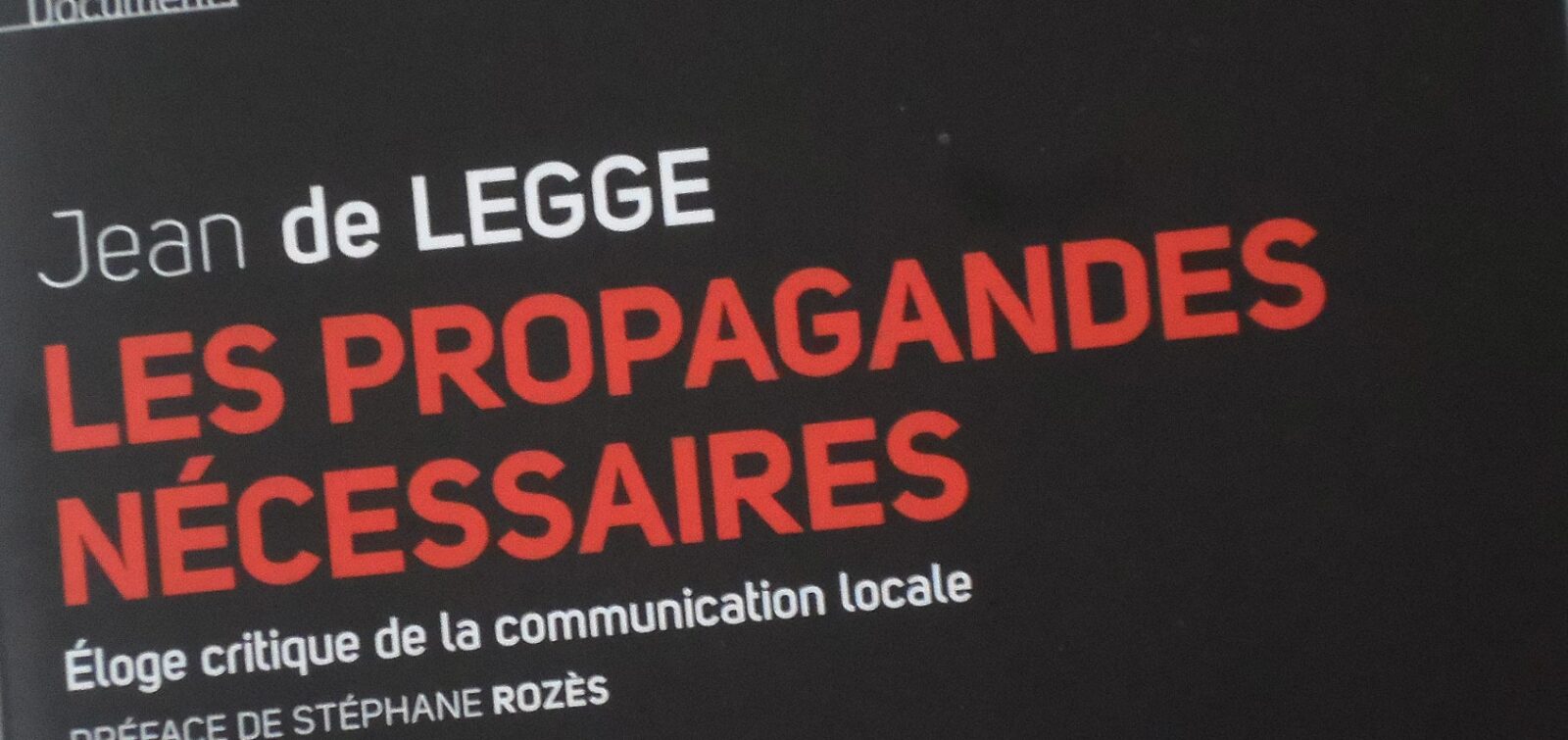 Jean de Legge, Les Propagandes nécessaires – Éloge critique de la communication locale, Paris, Le Cherche midi, 2014, 216 p., 16 euros.