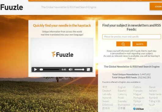 Fuuzle offre quelque chose de plus que les lecteurs de RSS existants. Tout d’abord, le fait de les associer aux bulletins d’informations et à leur traduction dans les différentes langues cibles est quelque chose de tout à fait novateur. Il est en de même pour la recherche d’un mot spécifique et de combinaisons de mots dans les RSS et les bulletins d’informations. Fuuzle propose un service d’ « alertes » qui transmet les informations pertinentes aux utilisateurs aux heures qu’ils ont indiquées. Fuuzle est bien plus qu’un « lecteur de RSS avec un nombre limité d’URL ». À intervalles de quelques minutes, des millions de RSS sont vérifiés, traduits et diffusés en temps réel.