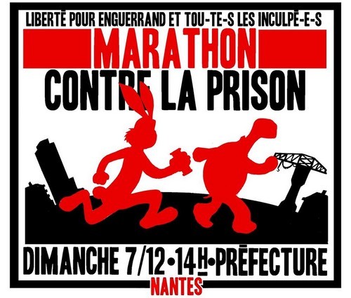 Par ailleurs un « marathon contre la prison » sera organisé par des militants proches de l’extrême-gauche demain dimanche 7 décembre à 14 h de la Préfecture au Tribunal de Nantes. Ce marathon coïncide avec le refus d’aménagement de la peine d’Enguerrand Delanous, condamné à un an de prison ferme le 1er avril pour avoir jeté des pierres et des cocktails Molotov sur les policiers le 22 février dernier lors de la manifestation contre l’aéroport, condamnation non définitive puisqu’il a fait appel.