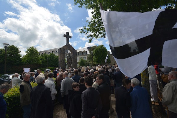 Devant les manifestants – dont beaucoup étaient venus en famille avec leurs enfants – l’ancien maire de la ville, Paul Anselin, a annoncé la création d’une association et d’un site Internet dédié pour la sauvegarde de la statue du pape et plus largement pour la défense de la tradition chrétienne en Bretagne.