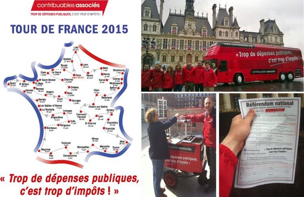 17/06/2015 – 08H00 Saint-Brieuc (Breizh-info.com) – Pendant deux mois et demi, du 26 avril au 14 juillet 2015, Contribuables Associés parcourt les routes de France. Son objectif est informer et mobiliser le plus largement possible sur la nécessité de baisser les dépenses publiques. Le 23 juin, les militants et bénévoles seront à Saint-Brieuc (à partir de 12h Place de la Résistance à l’angle de la rue du Chapitre.), puis le 24 à Saint-Malo ( à partir de 12h Place Châteaubriant près de la porte Saint-Vincent.) , le 25 au Mont-st-Michel et le 26 à Rennes (à partir de 12h place de la Mairie).