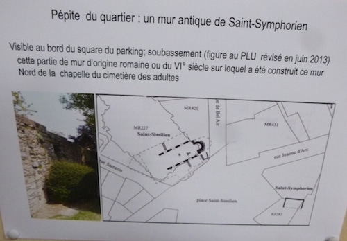 Il s’agit de la chapelle saint Symphorien, qui se dressait dans le cimetière des adultes de saint Similien. Restaurée en 1768, elle fut fermée en 1790 par les révolutionnaires et détruite en grande partie au XIXe, sauf le mur nord qui a survécu, englobé dans les constructions voisines. Ce mur date du VIe siècle, comme la chapelle en grande partie disparue. Une autre, la chapelle Saint-Etienne, se trouvait dans le même cimetière, mais plus au nord. Elle a été utilisée jusqu’à la fin du XVIe siècle pour les sépultures mais a disparu sans laisser de traces à la Révolution.