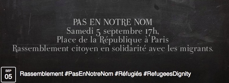 Sur la page de l’évènement facebook crée pour l’occasion, on peut lire y lire cette prose très rose-rouge : « Pour marquer notre solidarité avec les réfugiés et que nous ne supportons pas la passivité de nos gouvernants sur le sujet. Un rassemblement aura lieu à partir de 17 h à Paris. Je propose à ceux qui le souhaitent de décliner ce rassemblement dans le Morbihan. Nous ne pouvons nous contenter d’entendre le décompte des morts. Le problème n’est pas l’afflux de réfugiés mais l’absence de solidarité des pays de l’Union Européenne. Il est encore temps de dire Pas en notre nom. Nous refusons que les étoiles du drapeau de l’Union Européenne soient des miradors veillant sur notre forteresse. ».
