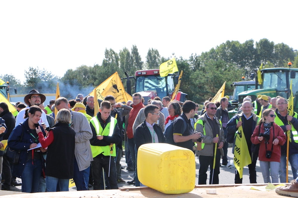 Une cinquantaine de tracteurs et plusieurs centaines de paysans ont ainsi voulu montrer symboliquement et pacifiquement leur colère et leur ras le bol face à la surdité des pouvoirs publics concernant la crise agricole. L’occasion également pour les représentants syndicaux de se démarquer de la FNSEA, dont ils accusent le président Xavier Beulin d’être en partie responsable des problèmes rencontrés par le monde agricole aujourd’hui.