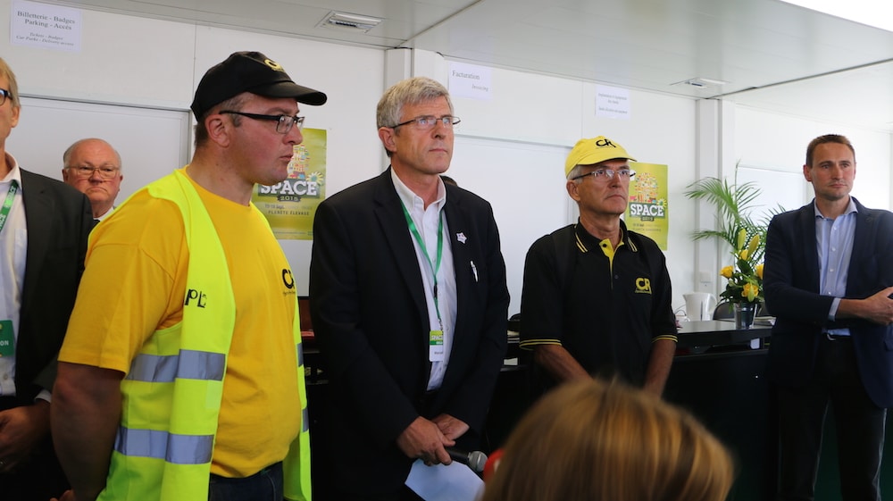 Du côté des personnalités politiques bretonnes, Christian Troadec s’est rendu ce mardi sur plusieurs stands du SPACE – en compagnie notamment de Daniel Cueff – sans toutefois aller à la rencontre des manifestants.