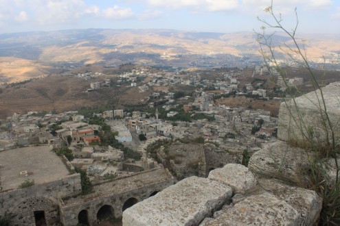Cette forteresse,symbole de la puissance franque en terre sainte du temps des croisés a été passablement endommagée pendant les quelques semaines d’occupation par Daesh.Le sol du château a été labouré par les terroristes qui lors de l’assault de l’armée cherchaient les souterrains secrets qui leur auraient permis de s’échapper.La forteresse a été reprise par l’armée et ce sont les soldats de garde dont le chef , passionné par l’histoire de son pays,qui nous ont fait découvrir l’endroit.En contre-bas du château un village déserté,dont toutes les maisons sont écrasées par les bombes témoigne de la violence des combats.