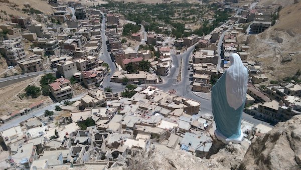 Depuis Damas nous nous sommes rendus à Maalula,ville chrétienne où l’on parle encore l’araméen, la langue dans laquelle s’exprimait le Christ ! Cette ville a été occupée pendant plusieurs mois par Daech. Les traces des combats sont inouïes,les murs de l’hôtel sont criblés d’impacts de balles et d’obus. Les églises ont brûlé, saccagés, les icônes mutilés,des chrétiens assassinés.
