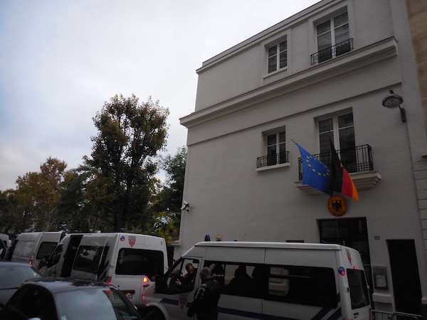 26/09/2015 – 05H00 Paris (Breizh-info.com) – Environ 500 personnes se sont rassemblées hier, le 24 septembre, face à l’ambassade d’Allemagne, boulevard de l’amiral Bruix, dans le XVIe arrondissement de Paris, afin de manifester leur opposition à la politique pro-migratoire du gouvernement allemand. Le quartier était bouclé par une centaine de CRS somme toute très pacifiques – officiellement, car l’extrême-gauche avait lancé un appel à une contre-manifestation tout près, porte Maillot.