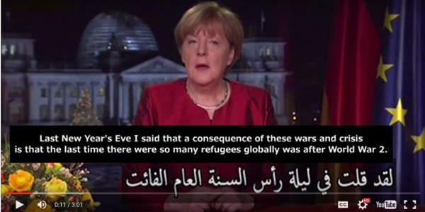 La chancelière d’Allemagne ne change pas de cap et de façon à ce que les «migrants» comprennent parfaitement ses vœux de bienvenue, elle n’a pas hésité à faire traduire son discours en anglais et en arabe.
