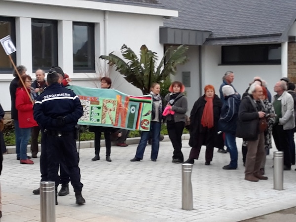 Face à eux, une petite trentaine de contre-manifestants, avec des écriteaux « bienvenue », « degemer mat » et une banderole « fraternité » se sont également faits entendre. Des « youyous » ont même été lançés lorsque Gilles Pennelle a pris la parole devant la mairie. Une présence policière était bien visible, alors que des curieux regardaient la scène.