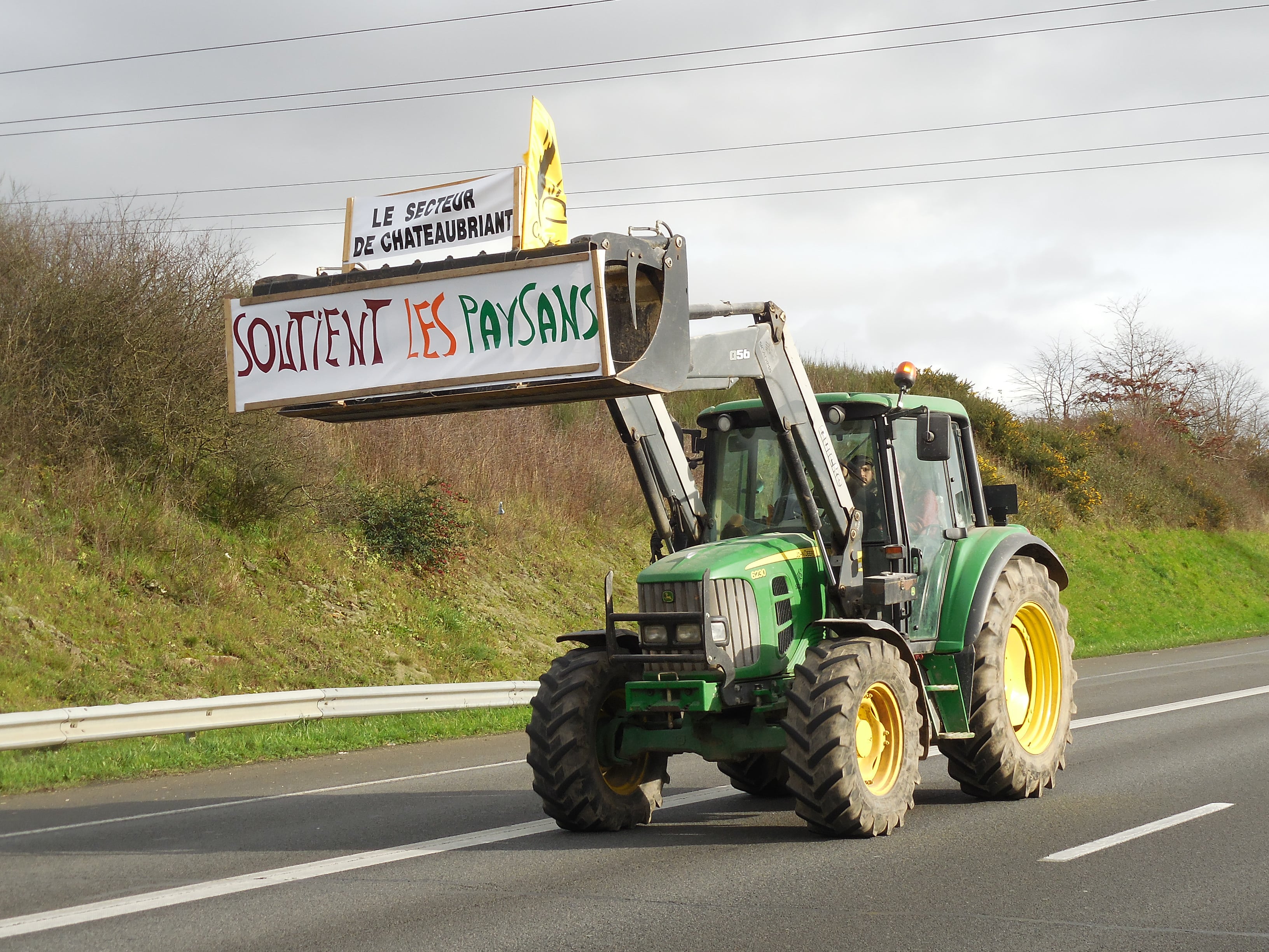 Une quinzaine de tracteurs est venue du seul pays de Beaupréau – des communes aux portes de Bretagne. « l’asphyxie financière que Vinci essaie d’imposer pour pousser les paysans à partir, avec leurs assignations à 200 € d’amende par infraction et par jour, saisie des cheptels etc. est inadmissible. Mais nous sommes en France et nous, paysans, on ne se laissera pas faire. » Venu de Saint-Colomban , Michel estime que « cette manifestation est la preuve de notre capacité de mobilisation : en quelques heures, si besoin, on peut faire converger des centaines de tracteurs là où il y en aura besoin. C’est un test, à la fois pour le pouvoir et pour nous ». Il estime que le projet d’aéroport est une « aberration économique et écologique. On dit tout le temps que l’argent manque, eh bien d’accord. Trouve-t-on qu’il y a assez de professeurs dans les écoles, assez d’infirmières dans les hopitaux, que les routes sont assez entretenues, pour éprouver le besoin vital de dépenser tant d’argent dans un aéroport nouveau ? »
