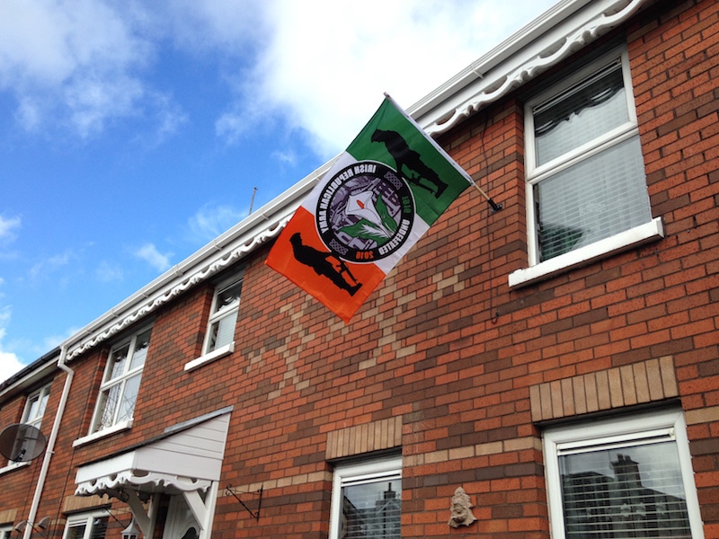 Le dimanche 27 mars 2016, c’est à Falls Road, bastion nationaliste catholique, que nous avons assisté à un grand défilé en hommage aux soldats de l’Irlande libre. Des milliers de personnes s’étaient massées, malgré les nombreuses averses du dimanche, tout au long des kilomètres qui mènent de Divis Tower (proximité du centre-ville « neutre » de Belfast) à Milltown Cemetery, le cimetière de Belfast où – entre de nombreuses tombes et croix celtiques totalement laissées à l’abandon pour certaines – l’on retrouve notamment le « carré de l’IRA », l’armée républicaine irlandaise.