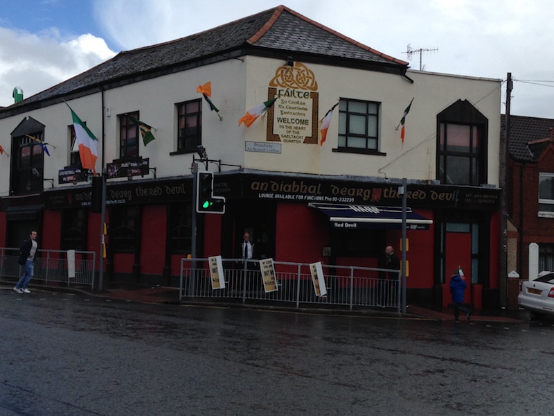 Un bastion loyaliste qui change lui aussi de visage, signe d’une évolution des mentalités : il y a encore moins de dix années, une grande fresque « you are now entering in loyalist sandy row, heartland of south belfast freedom fighters », sur laquelle on apercevait un homme cagoulé et en armes et la main rouge de l’Ulster, était érigée à l’entrée du quartier. Elle a été remplacée par un « collage » en hommage au roi William III, nettement plus « politiquement correct ».