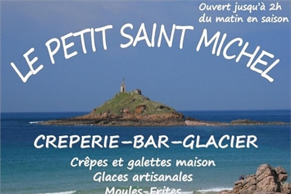 Après une bonne marche rien de tel que se désaltérer ou se restaurer au Petit Saint Michel, bar crêperie qui de premier abord semble bien commun mais dont la découverte terminera en beauté votre escale. La carte est courte et simple : moules, huitres, tourteau, galettes. Les produits sont frais et cuisinés à la perfection. Côté dessert, les coupes glacées et les crêpes sont garnies à souhait.