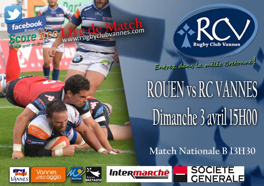 Composition de l’Equipe du Rugby Club Vannes pour le match du 03 avril à Rouen