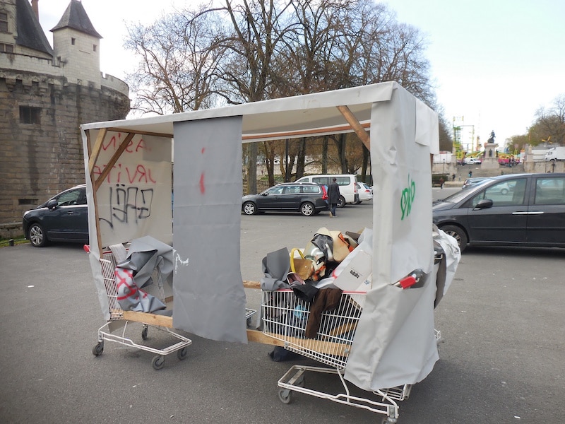 Ces casseurs d’extrême-gauche sont très bien organisés. Par exemple, lors de la manifestation du 31 mars, les policiers ont récupéré près du château une curieuse structure transportée par les groupes d’émeutiers de l’ultra-gauche, et qu’on pouvait voir lors des affrontements entre l’île Feydeau et le CHU. Formée de quatre caddies solidarisés par des planches et entourée de bâches, c’est en fait une armurerie et un vestiaire ambulant : deux caddies contenaient des vêtements, deux autres des projectiles divers et des panneaux pouvant servir de boucliers. « Comme ça, ils font des actions dans la manif – par exemple envoyer des projectiles sur des policiers – puis ils rentrent à l’abri des bâches, se changent en un tournemain et disparaissent dans la foule », explique le policier. « Et ils recommencent plusieurs fois s’il le faut. Comme ça, on a plus de mal à les repérer grâce à leurs vêtements puis à les interpeller, et si on les serre, on ne va pas retrouver sur eux le foulard, les gants ou les outils qui pourraient les confondre et nous permettre de les présenter à la justice ».