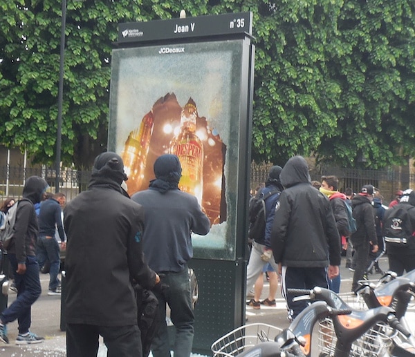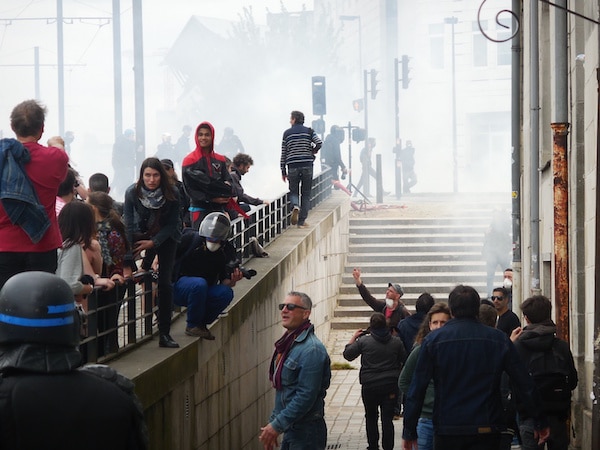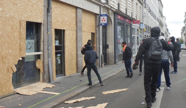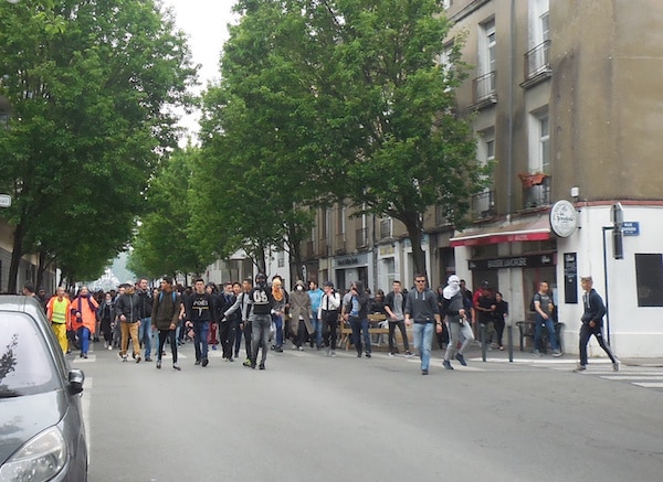 Par ailleurs, l’effet des interdictions de manifester en ville prononcées par la Préfecture à l’encontre de 17 personnes issues pour l’essentiel de l’extrême-gauche peut être relativisé : plusieurs d’entre elles ont été vues dans cette manifestation sauvage du 19 mai. Certains autres, qui faisaient partie du groupe des incendiaires d’un scooter le 17 mai dernier près du Carré Feydeau, étaient à nouveau là pour casser. Cette fois armés de barres de fer.