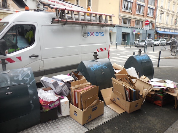 La Parcheminerie : poubelles qui débordent et tags sur les murs