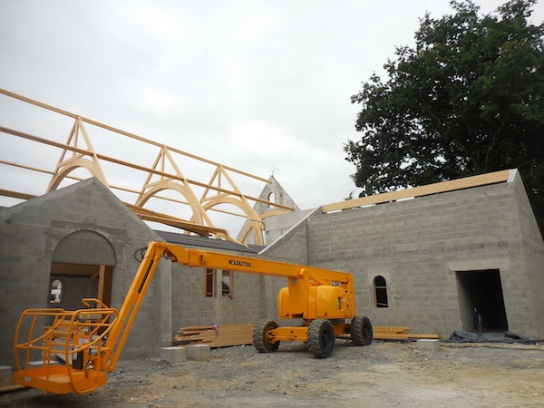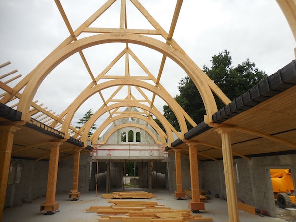 Basée en Mayenne, cette entreprise qui compte déjà 112 salariés est assez connue pour ses solutions sur mesure sur les chantiers, et la conception d’éléments spécifiques de charpente. La voûte de la chapelle a été assemblée du 1 au 12 juillet pour les bas-côtés, à partir du 14 pour la nef principale. « Ce sont deux ans et demi de préparation », détaille l’abbé. « La chapelle devrait être achevée pour Noël ».
