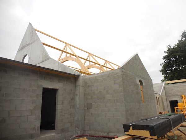 28/07/2016 – 08H30 Château-Thébaud  (Breizh-info.com) – Lorsque la Fraternité Saint-Pie X a acquis en 2009 l’ancienne maison de retraite de la Placelière, qui dépendait du CHU de Nantes et était vide depuis plusieurs années, personne n’avait cru que l’école aurait un tel succès. Six ans plus tard, on y est : il faut pousser les murs et une chapelle, toute neuve, est en train de sortir de terre. Nous nous sommes rendus sur le chantier.
