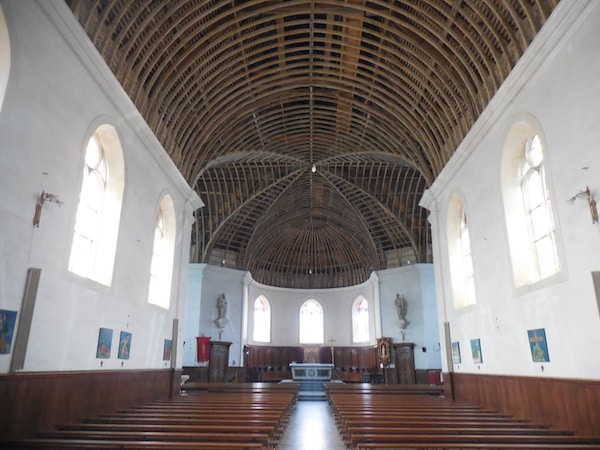 12/08/2016 – 5H15 Saint-Sulpice-des-Landes (Breizh-info.com) –Avec sa charpente à nue, l’église de Saint-Sulpice-des-Landes déconcerte. Pourtant, c’est une miraculée : elle a été fermée de longues années car sa voûte s’effondrait, jusqu’à que la municipalité de ce petit bourg perdu à l’est de la Loire-Atlantique fasse courageusement les travaux nécessaires et la rouvre. Surtout, elle a des vitraux intéressants. Contrairement aux habitudes, ce ne sont pas des saints qu’ils représentent – sauf dans le choeur et les transepts – mais les vertus et les commandements catholiques.