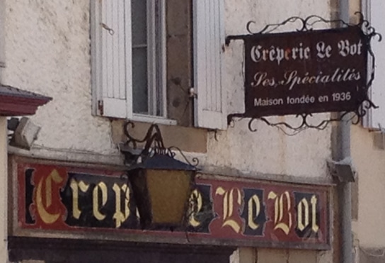 Alors que la côte bretonne n’est pas avare en restaurants aux cartes surchargées et autres usines à touristes, ici vous ne trouverez pas de moules frites, d’hamburgers couleur locale ni de pizzas aux crevettes : depuis 1936, la Crêperie Le Bot se contente de faire des crêpes sucrées ou salées (nous précisons donc amicalement que l’on peut aussi parler, dans ce cas, de « galettes » pour éviter les confusions chez les néophytes et les habitants de l’Est de la Bretagne), et les fait très bien !