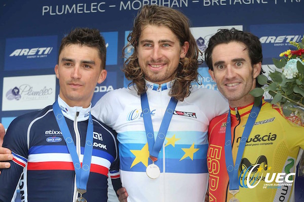 20/09/2016 – 06H30 Plumelec(Breizh-info.com) – Le premier champion d’Europe de la catégorie Élites est Peter Sagan qui a donc écrit dimanche 18 septembre 2016 à Plumelec (56) une page importante de l’histoire du cyclisme. Le phénomène slovaque s’est imposé en patron dans les derniers hectomètres d’une course particulièrement disputée. Au bout de 17 tours d’un circuit de 13,7 kilomètres, en haut de la Côte de Cadoudal, Sagan est allé se parer du premier maillot étoilé de champion d’Europe dans la catégorie Elites. A ses cotés sur ce podium historique, le Français Julian Alaphilippe et l’Espagnol Daniel Moreno.