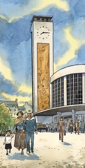 Le jeune dessinateur Damien Cuvillier parvient à reproduire l’atmosphère du port de Brest pendant l’avant-guerre. Il s’y est déplacé à plusieurs reprises. Pour une fois dans le monde de la bande dessinée, il a pris le temps d’effectuer de sérieuses recherches pour dessiner le Brest de 1937, et non celui d’aujourd’hui.