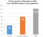 Allemands : 89 % de la population (73 054 000 environ) – 79,5 % des crimes sexuels (36 634 env.) – 50 crimes pour 100 000 Allemands