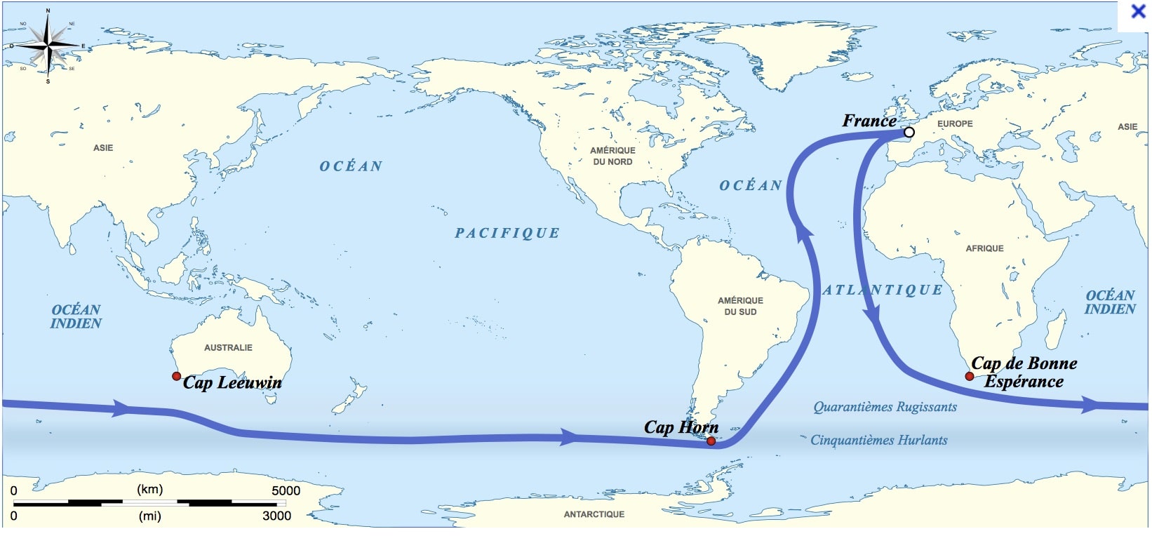 En troisième position arrive pour l’instant Jérémie Beyou (Maître Coq). Ce dernier a franchi le Cap Horn dans l’après midi.  Il compte désormais plus de 800 milles d’avance sur Jean-Pierre Dick (StMichel-Virbac) puis sur le tandem Yann Eliès-Jean Le Cam . Au milieu du Pacifique se trouve Louis Burton (Bureau Vallée), puis environ 800 milles derrière lui le Hongrois Nandor Fa (Spirit of Hungary) qui est 8e mais un peu moins rapide (12 nœuds), à cause d’une petite zone de transition qui perturbe son vent d’Ouest.
