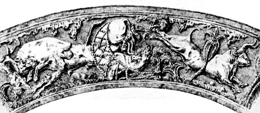 On connaît (ou on redécouvre) les vertus thérapeutiques de l’amande(9) – notamment pour le cœur et, dit la médecine indienne Âyurvédique, pour le cerveau – mais c’est encore au domaine du mythe que, pour conclure cet article, nous ferons appel. Un mythe ayant pour fonction d’insuffler une espérance de victoire en des temps assombris par le Saturne faiseur de fatalité. Selon le légendaire chevaleresque germanique, l’Empereur Frédéric Premier, dit « Barberousse », ne serait pas mort noyé (en 1190) mais, semblablement au roi Arthur et à Merlin, vivrait toujours en un lieu inaccessible. Il devrait revenir, en des temps ultimes de chaos, pour rétablir l’Empire européen. Auparavant, il lui faudra suspendre son écu à un arbre devenu sec et qui reverdira. Thème partiellement repris par Tolkien dans Le Seigneur des Anneaux. Or, le bouclier médiéval de la fin du XIIe siècle affecte parfois la forme d’une amande. L’écu de Frédéric revêt alors la signification d’une force protectrice vitalisant l’arbre symbolisant la jonction entre la terre (avec les racines) et le ciel (par les branches) ; image annonçant qu’à un certain moment cessera la stérilité spirituelle du monde européen.