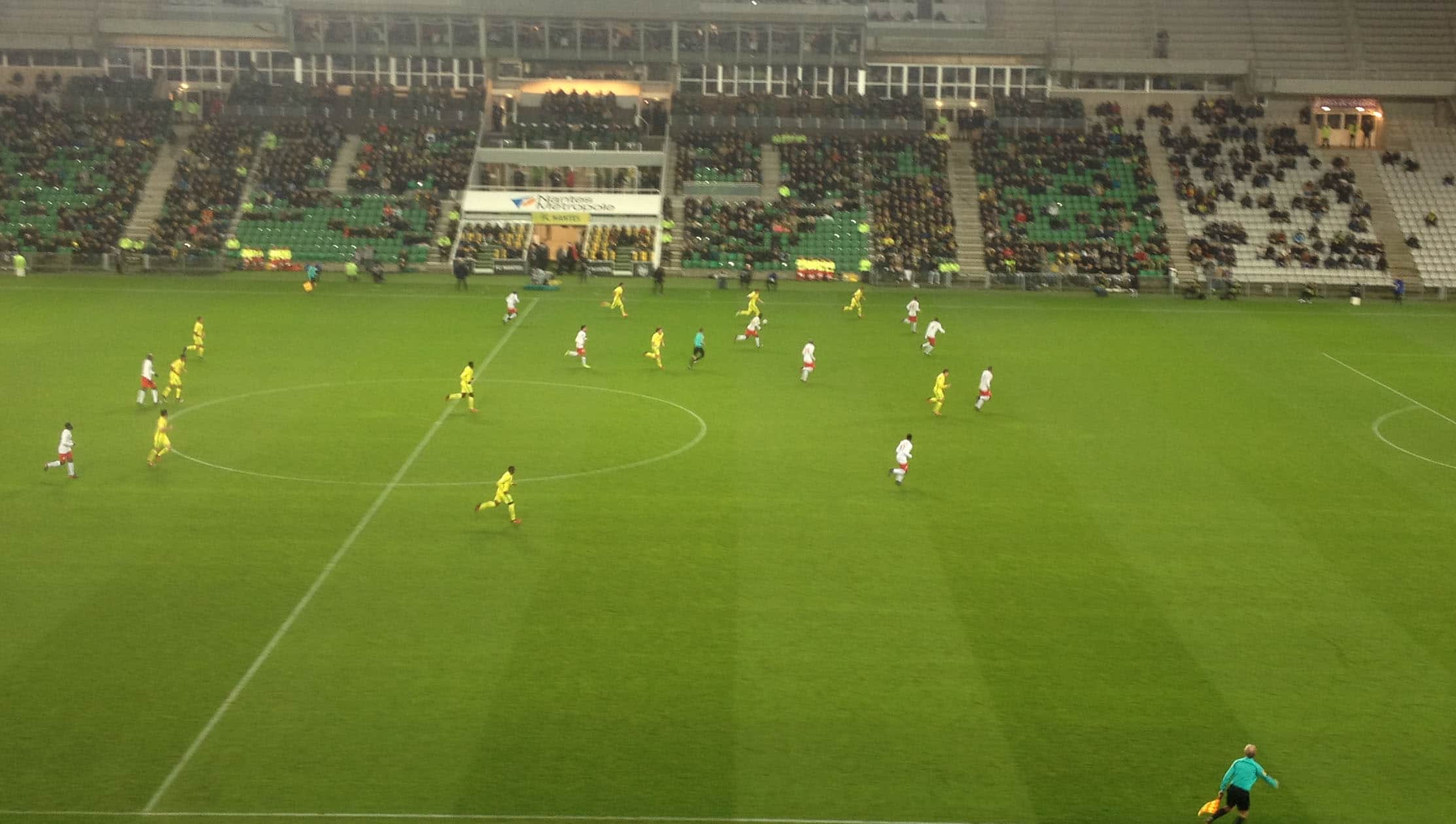 La première partie de la rencontre s’est déroulée sans cet entrain et cette légèreté apportés par Sergio Conceiçao tout cela dans un stade très peu rempli; ce n’était de toute manière pas l’atmosphère des grands soirs… Heureusement que la Brigade Loire était là pour rappeler aux spectateurs que l’enjeu du match était l’accès potentiel à la Ligue Europa.