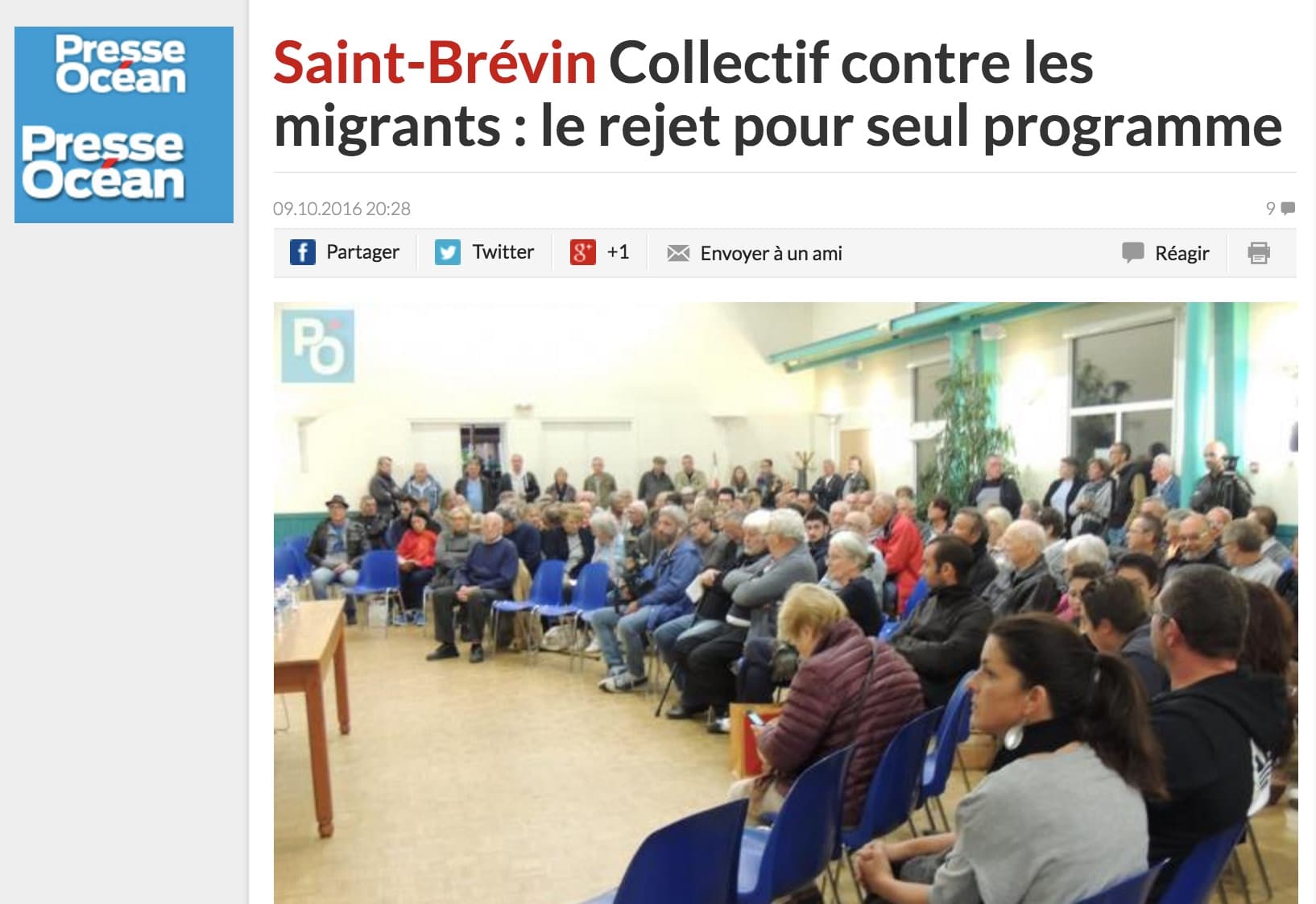 L’article de Françoise Refloc’h dans le journal Presse Océan, évoquant la réunion d’une association s’opposant à l’arrivée prochaine de 70 migrants en provenance du camp de Calais dans la ville de Saint-Brévin (Loire-Atlantique) ne déroge pas à cette règle.