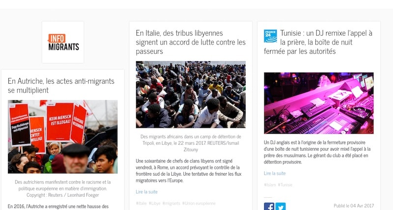 Il s’agit effectivement d’un site militant, puisqu’on y trouve une revue de presse avec uniquement des articles dénonçant les pays ou les initiatives s’opposant à l’immigration. Mais aussi des informations pour trouver un travail en France, ainsi que des analyses pour connaître le pays qui accueille le plus de réfugiés.