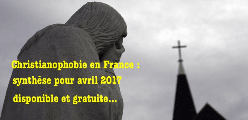 15/05/2017 –05H45 Paris (Breizh-info.com) – La synthèse de l’Observatoire de la christianophobie du mois d’avril fait état d’une préoccupante augmentation des actes d’hostilité contre les chrétiens et leurs lieux de culte en France. Les autorités publiques, de leurs côtés, font la sourde oreille et se félicitent de la baisse des actes dits “antisémites” et “antimusulmans”.