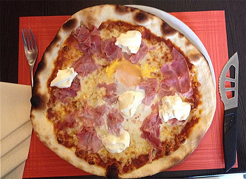 Notons notre légère déception en ce qui concerne les pizzas. Une pâte à l’aspect feuilleté qui manque de croquant et l’absence d’un authentique four au feu de bois viennent mettre un bémol à une cuisine pourtant généreuse et pleine de bonnes intentions. Le dosage de certains ingrédients (crème notamment) serait aussi à revoir.