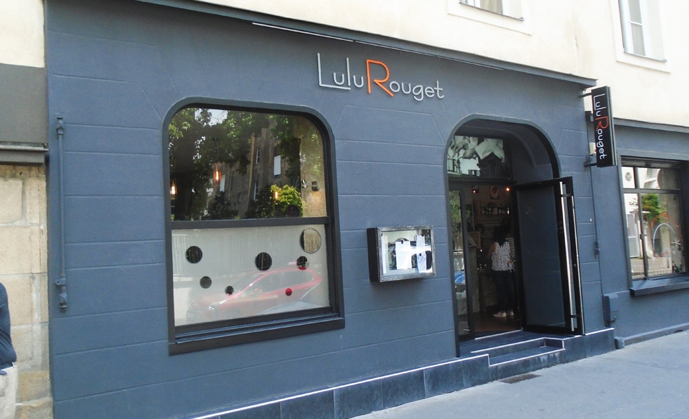 Lulu Rouget a pris la place d’un « chinois » qui végétait là depuis un demi-siècle. La salle est du genre sobre, sans trop d’originalité et les tables un peu serrées. Au menu du jour, en entrée terrine de races locales ou sèche laquée, orange et vermicelles de sarrasin ; en plat, « le poisson du bocal » (thon rouge) et « langues de chat », du bœuf, pleurotes… ; au dessert, poivrons, framboises et chocolat. Pour se rafraîchir, eau en carafe et muscadet amphibolites 2015 (domaine Landron), racé.
