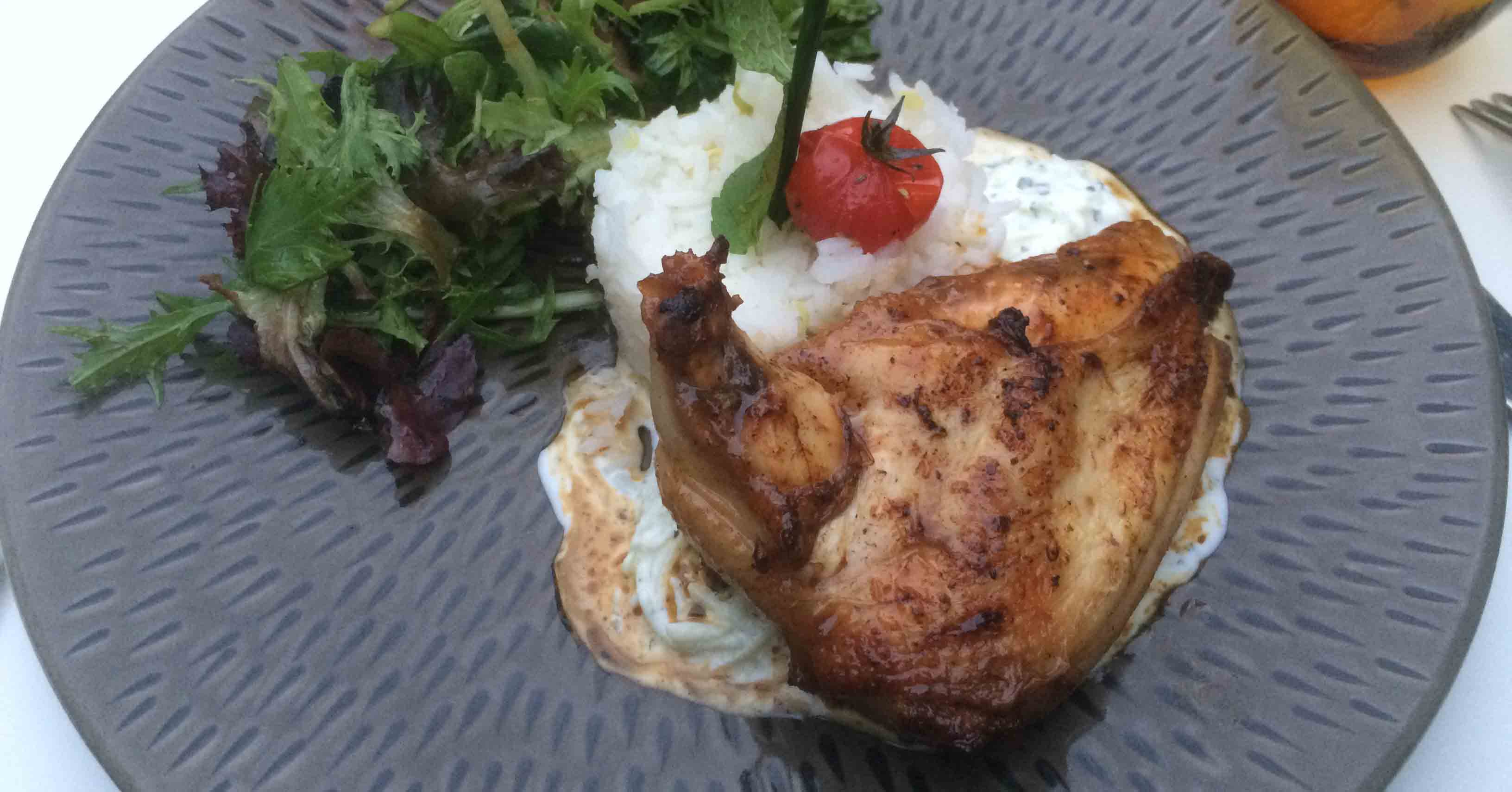 Le service, impeccable est au niveau attendu. Dans l’assiette, un poulet savoureux est accompagné de riz relevé d’une sauce froide très audacieuse au tzatziki ! Une alliance étonnante mais délicieuse. La viande, de belle qualité, est parfaitement cuite.
