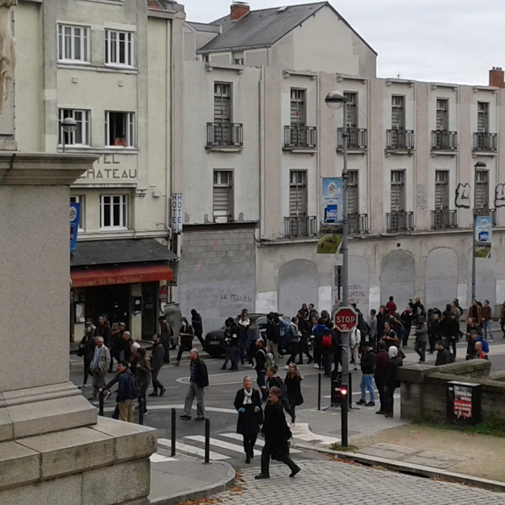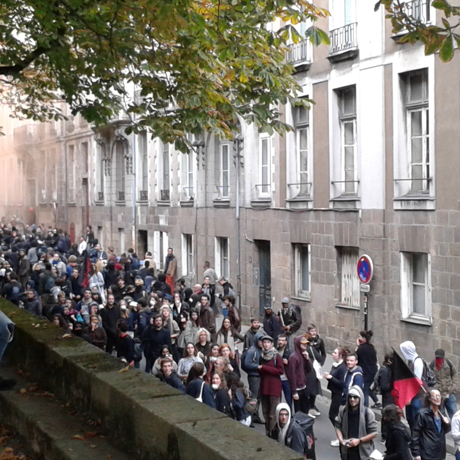 La manifestation nantaise s’est à nouveau illustrée par divers tags cours Saint-Pierre et sur la Préfecture, tels que « La BAC au bûcher », MEDEFesnestrons les patrons »et autres « un commissariat qui brûle c’est de l’art ». Un black block de 150 personnes ouvrait le cortège derrière une banderole qui avait le mérite de la sincérité « on fout le bordel »
