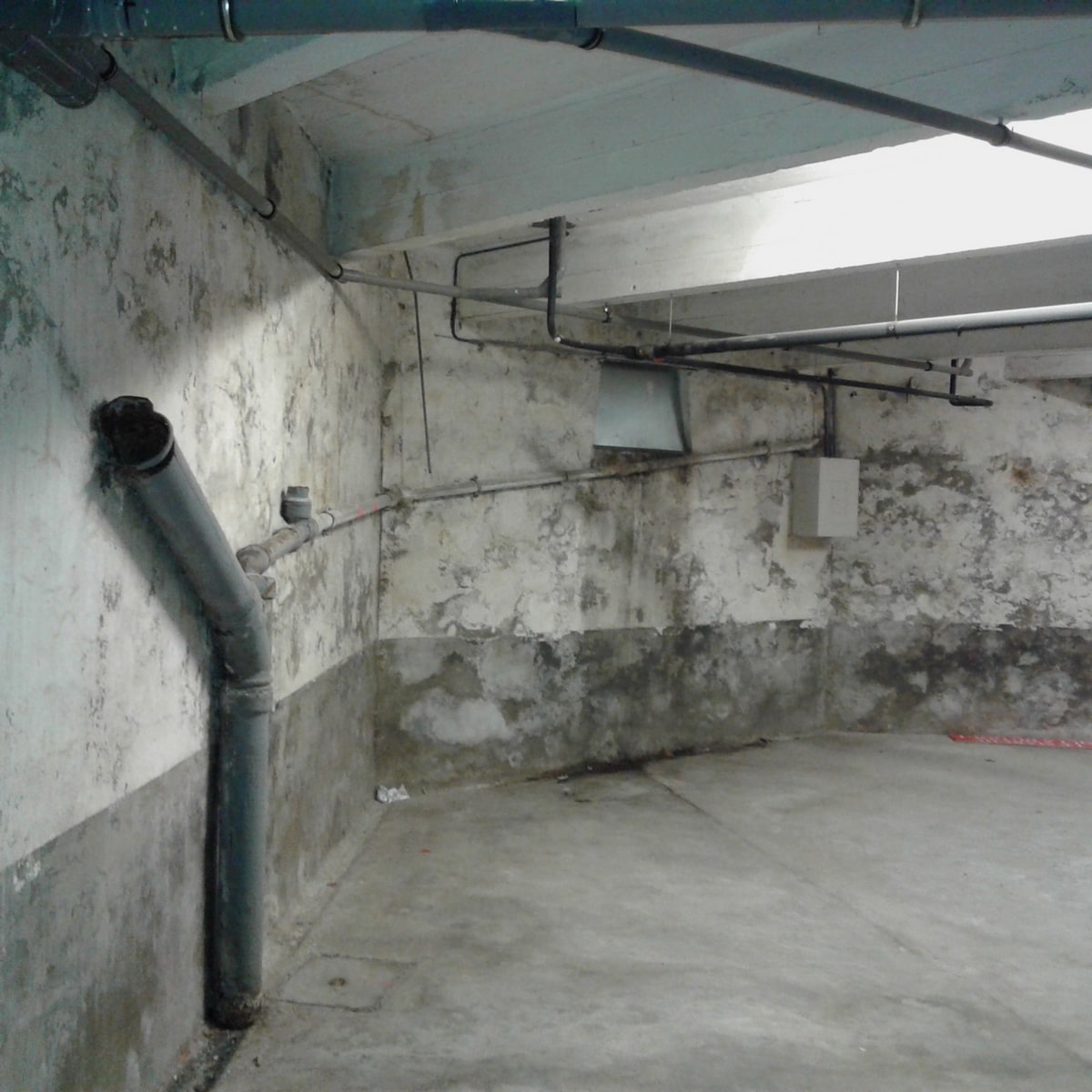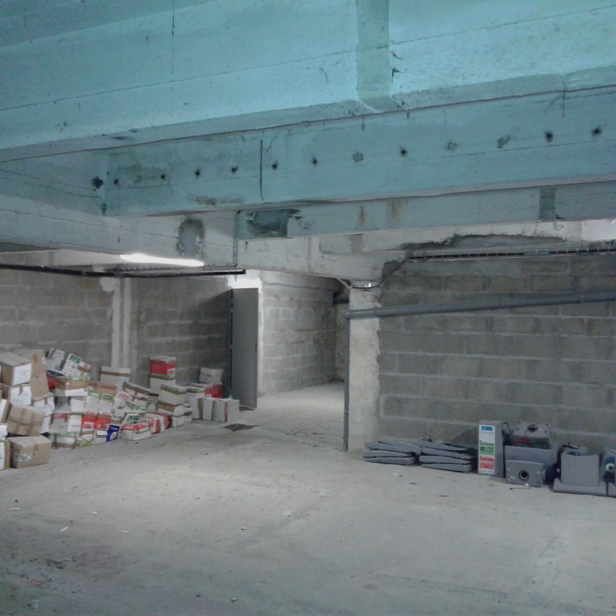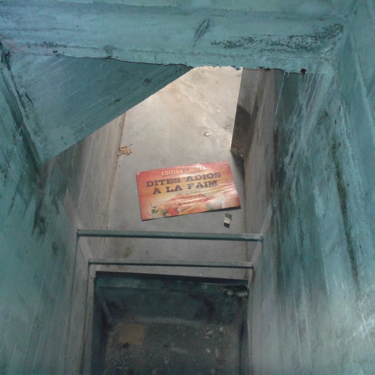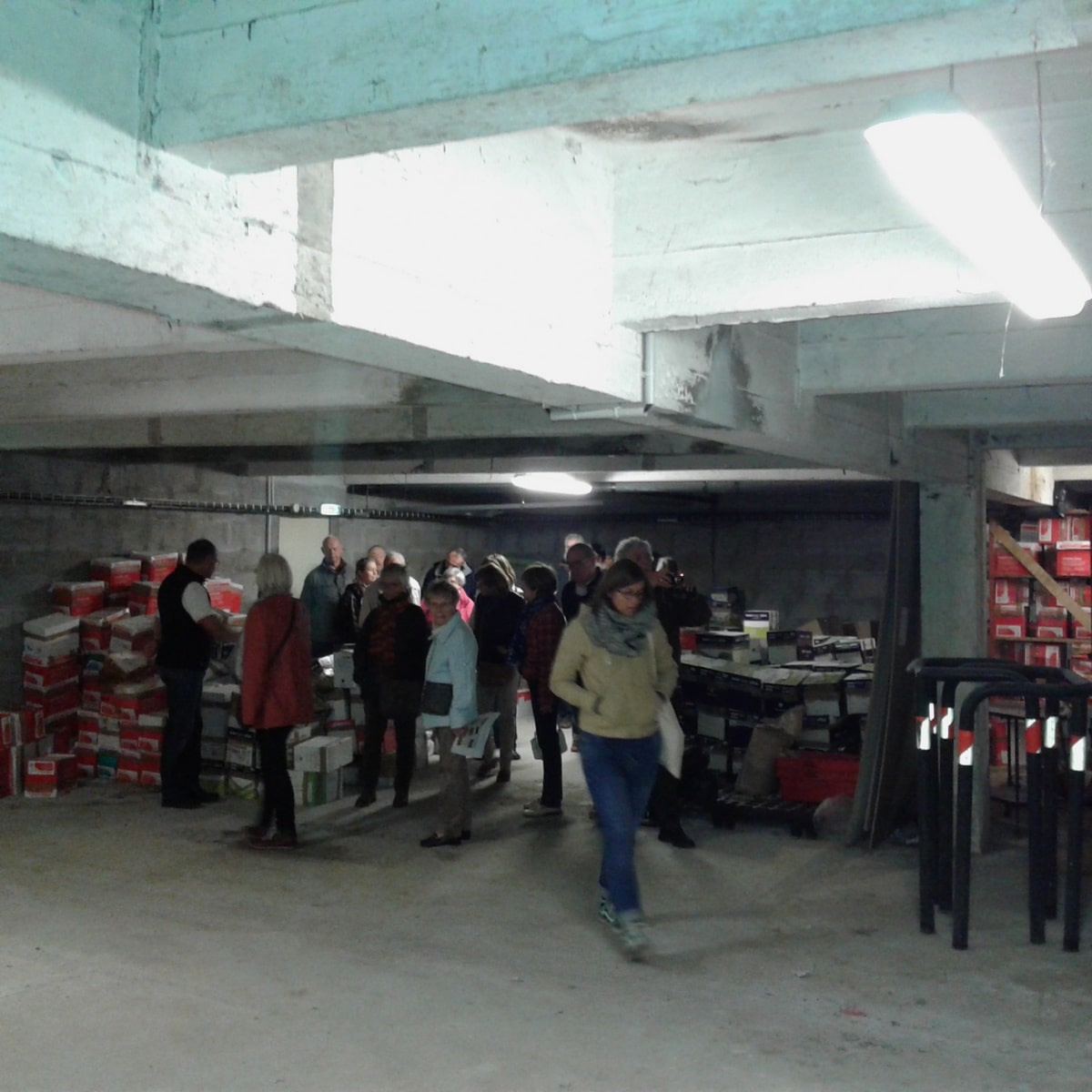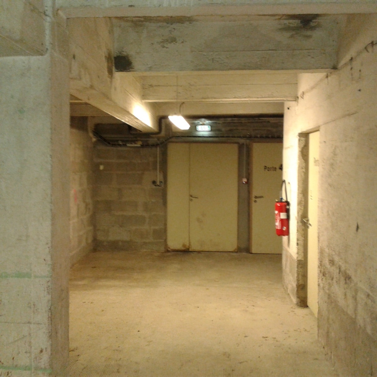 En haut du marché, sous les locaux du placier et des commerçants se trouve l’entrée des caves. A l’origine un sous-sol de 1145m² était prévu dans la partie haute du marché avec 100 caveaux et un monte-charge. Cependant, pour des raisons diverses, le monte-charge prévu n’a jamais été installé – seule sa trémie existe – et les caves n’ont pas trouvé preneurs. Aujourd’hui, ils servent à stocker… des années de PV de stationnement de la mairie et des palettes de masques respiratoires livrés par le ministère de la Santé à l’époque où l’ancienne visiteuse médicale Roselyne Bachelot voulait faire vacciner la France entière contre la grippe pour plus de 700 millions d’euros. Les masques n’ont jamais servi et se périmeront, inutiles, en 2018.