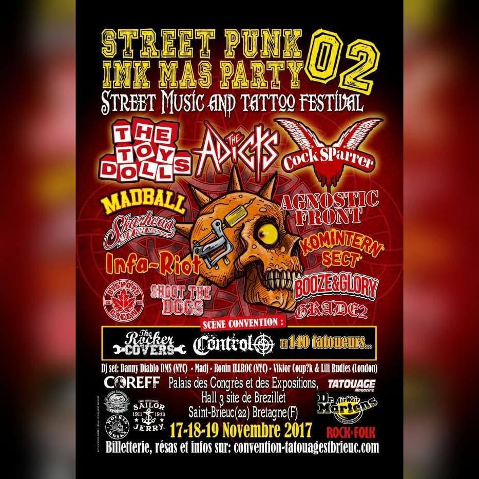 L’on remarquera notamment la présence des trois groupes fondateurs du Hard Core américain, Skarhead, Madball et Agnostic Front, tout droit venus de New-York pour être réunis pour la première fois en Europe en un même festival. D’autres groupes anglais réputés se joignent à la fête comme Booze&Glory, Cocksparrer – qui ne joue que pour la 6ème fois en France – ou The Adicts (dont le nouvel album sort justement le vendredi 17 novembre), et les français de Komintern Sect qui en font leur unique date de concert cette année.