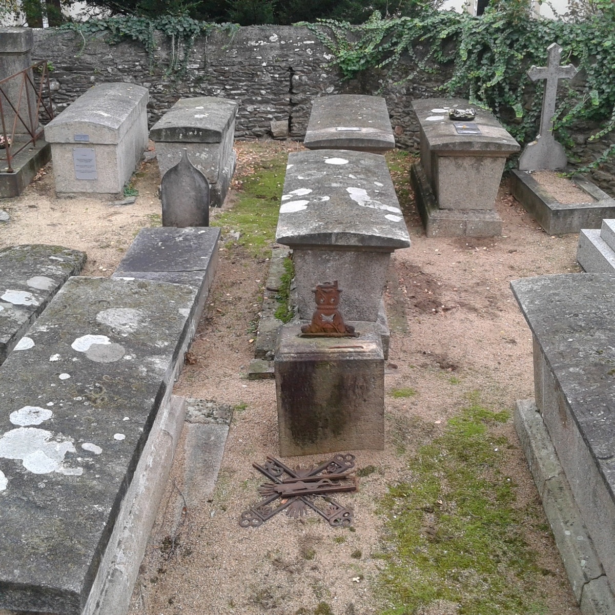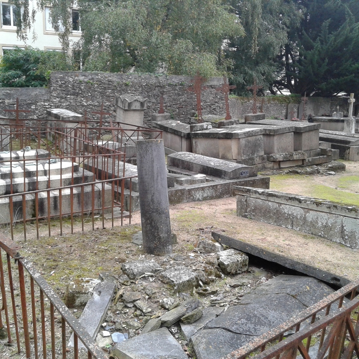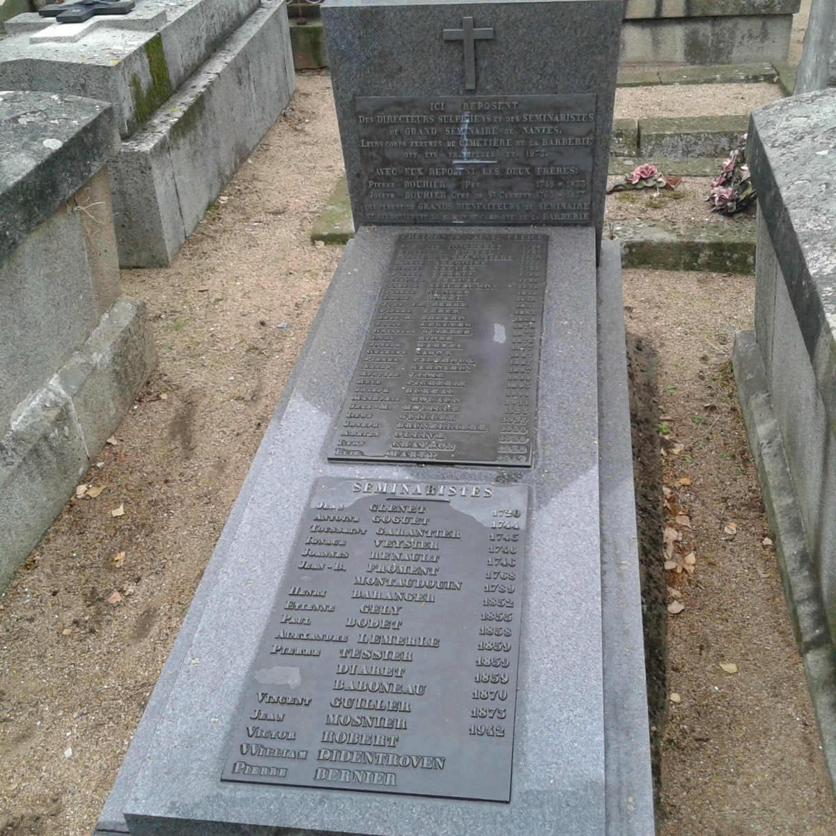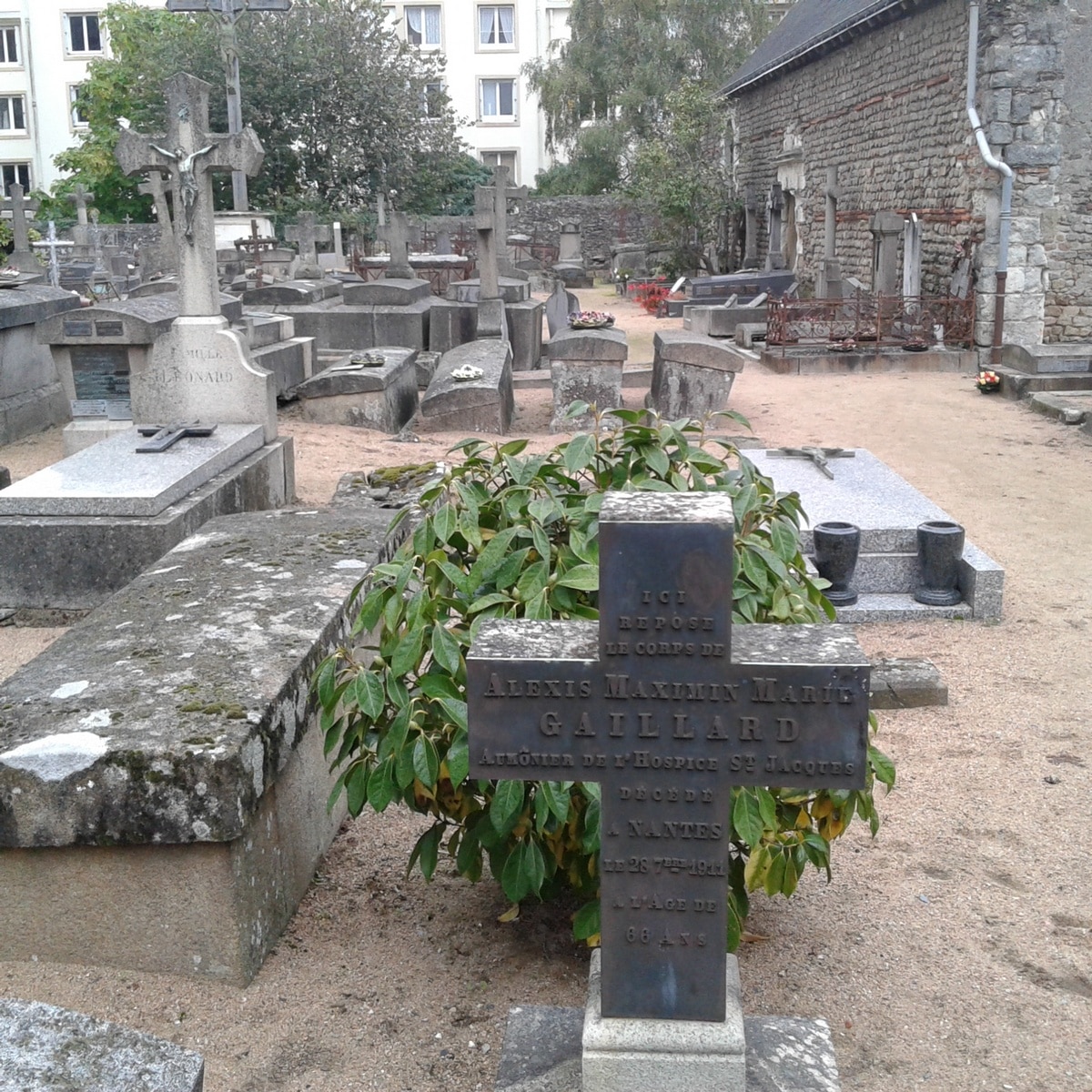 Seulement, si l’ordre règne dans le carré militaire, pour trouver les tombes des personnalités nantaises, à part celles qui, comme les Sourdille, disposent de leur chapelle (à condition qu’elle soit encore entretenue), c’est difficile. Rien n’est en effet signalé. Le diocèse n’a pas plus d’égard pour les tombes qu’il est censé entretenir – celles d’anciens chanoines de la cathédrale ou des curés de Saint-Clément notamment. Difficile est le sort des tombes de supérieurs d’ordres religieux, comme celle du R.P Paul-Julien Jubineau, chanoine théologal de la Cathédrale et supérieur des Missionnaires de l’Immaculée Conception – sa tombe se disloque et a perdu sa croix.