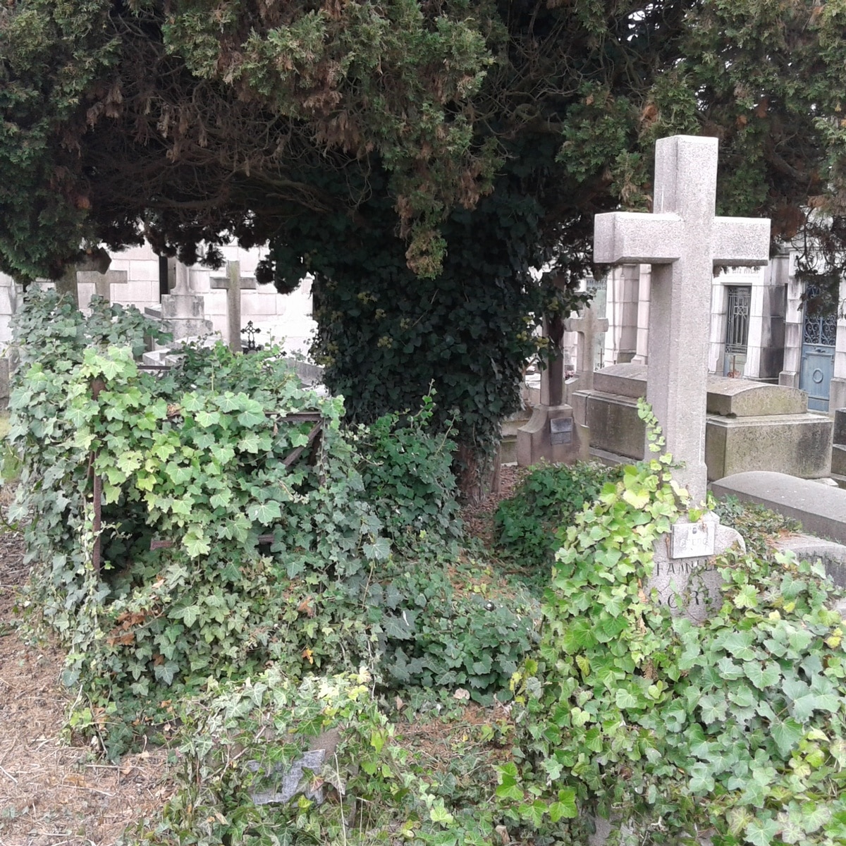 Nous arpentons ensemble des allées, elle s’arrête : « ici, il y a carrément un arbre entre les tombes », dont les dalles se disjoignent ; « ça, ce n’est pas de la mauvaise herbe, c’est un arbre sur un espace commun qui est en train de dégrader les tombes autour. Les racines, ça pousse. Là, ce n’est pas de l’écologie, c’est du laisser-aller ». Un peu plus loin, dans le nouveau cimetière, elle me montre une haie, manifestement à l’abandon. « On voit la lavande là, y en a partout, elle n’a pas été taillée depuis très longtemps ». Le reste de la haie est dans un état guère reluisant. « On a l’impression que la Ville n’en a rien à faire des morts… sauf pour encaisser les concessions qui ne sont pas données ».