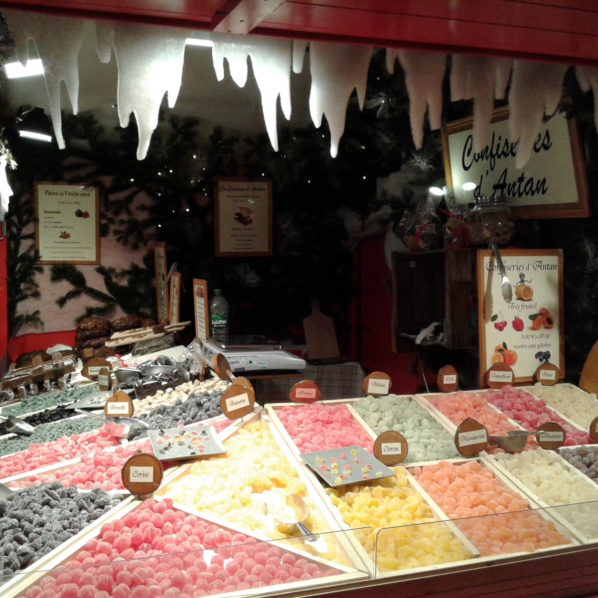 Place du Commerce, le chalet de « confiseries d’antan », avec ses pâtes de fruits secs (3.90 € les 100 grammes) plutôt goûteuses, mérite une halte. Un peu plus loin, un vendeur propose du pain d’épices du Quercy et du miel. Ce dernier est de montagne et de haute-montagne. Récolté et mis en pot par l’apiculteur, il mérite franchement son prix (9.50 € le pot de 500 grammes, 25€ les trois pots) avec qui plus est une différence minime par rapport au site du fabricant (8€ le pot de 500 grammes), ce qui est remarquable compte tenu des habitudes du marché de Noël nantais.