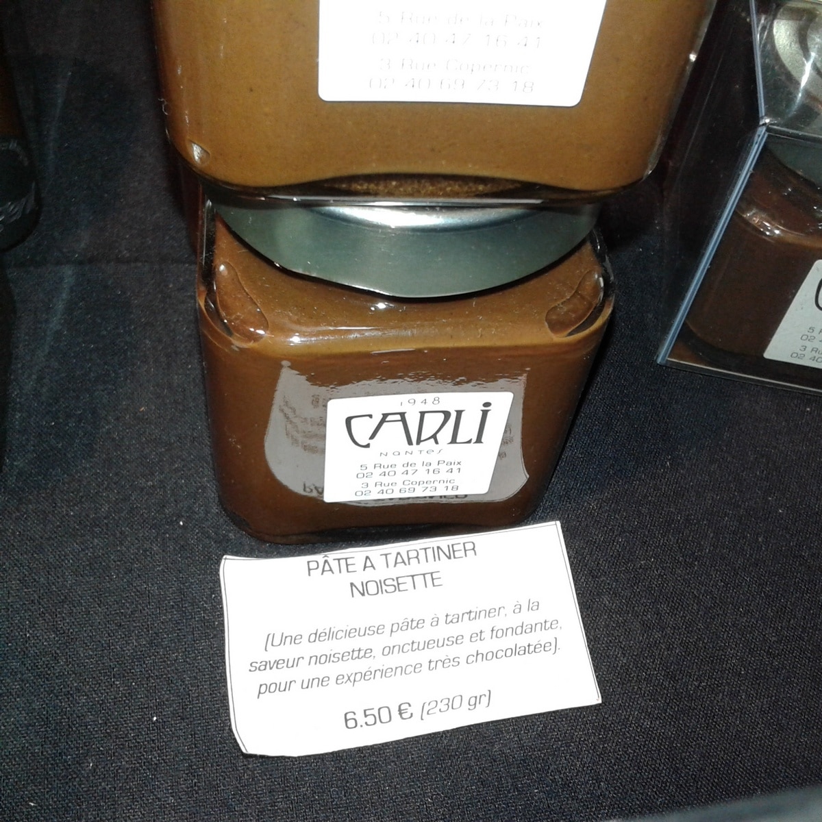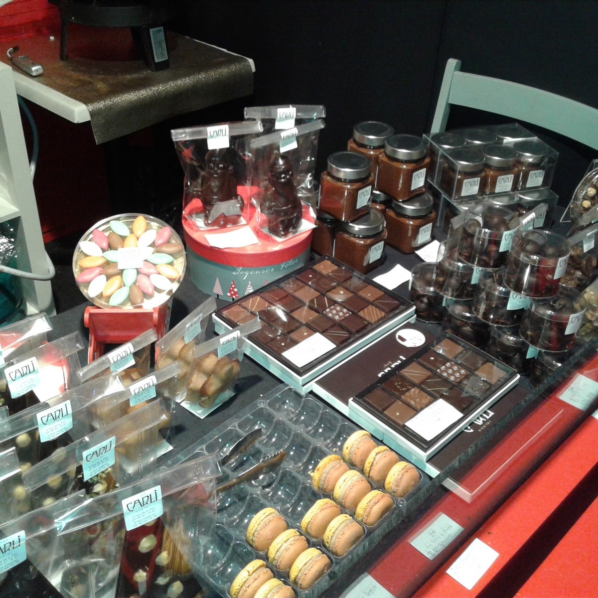 Place Royale, juste derrière les Diots de Savoie – qui viennent en fait de Sarzeau – se trouve le chalet de la confiserie Carli. Ce pâtissier-chocolatier installé rue de la Paix y propose ses chocolats, macarons (1.20€ pièce), biscuits, sapins de Noël gourmands et autres lichouseries. Coup de cœur pour la pâte à tartiner noisette, qui existe aussi en version croustillante, pour 6.50 € le pot de 230 grammes.